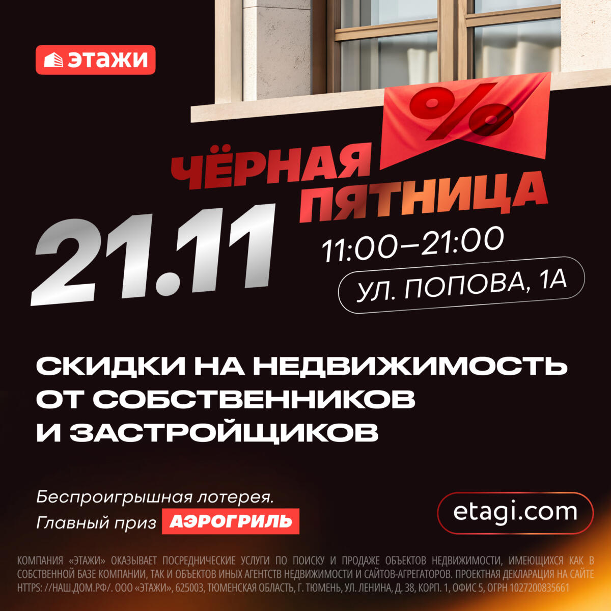 Черная пятница в Этажах — уникальные скидки на недвижимость Не упустите шанс выгодно приобрести недвижимость и получить бесплатную консультацию от партнеров компании Этажи!