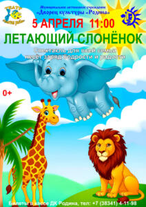 5 апреля 2026 г. ДК «Родина» приглашает маленьких бердчан на спектакль «Летающий слонёнок»