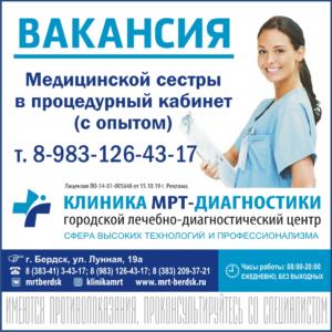 Требуется медицинская сестра / медицинский брат в процедурный кабинет в Клинику МРТ-диагностики Опыт работы обязателен