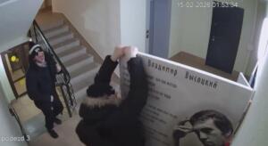 Двое молодых людей ворвались в подъезд и громили портрет великого поэта и актера