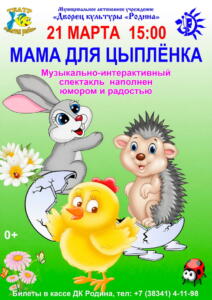 21 марта ДК «Родина» приглашает малышей на спектакль «Мама для цыплёнка»