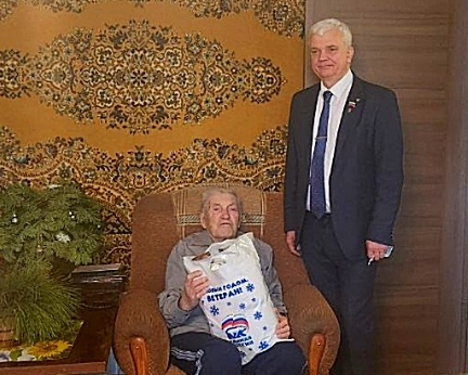 Единственный в Бердске фронтовик 98-летний Иван Митяшин получил подарок в честь Нового года