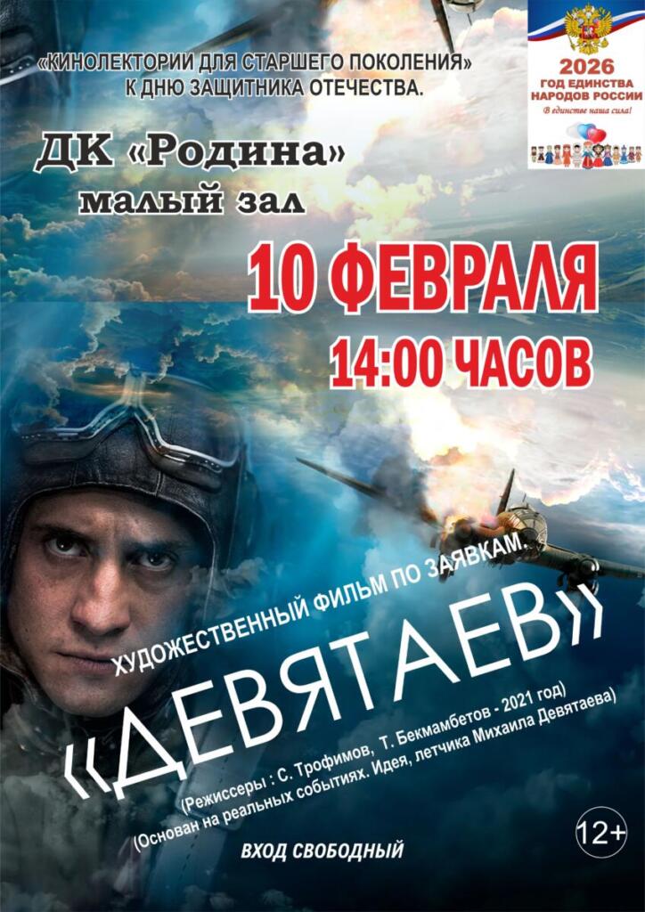 10 февраля 2026 г. ДК «Родина» приглашает на показ художественного фильма «Девятаев»