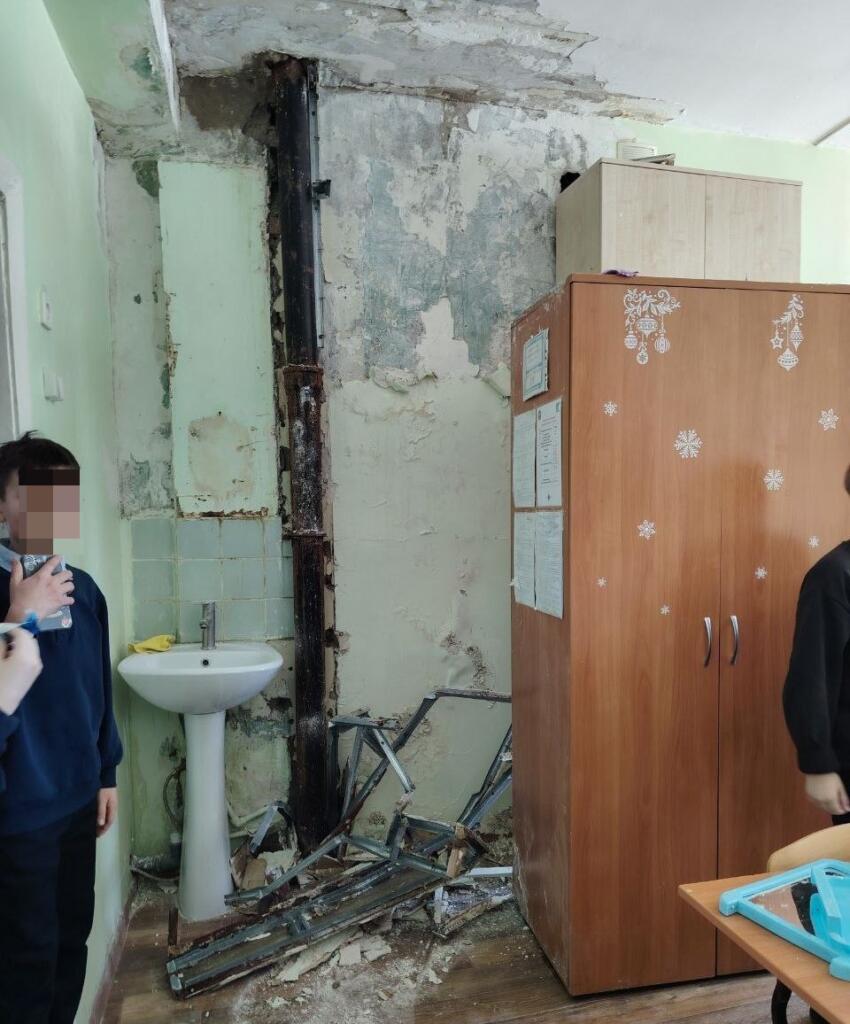В школе временно закрыты шесть кабинетов, удалена промокшая внутренняя отделка