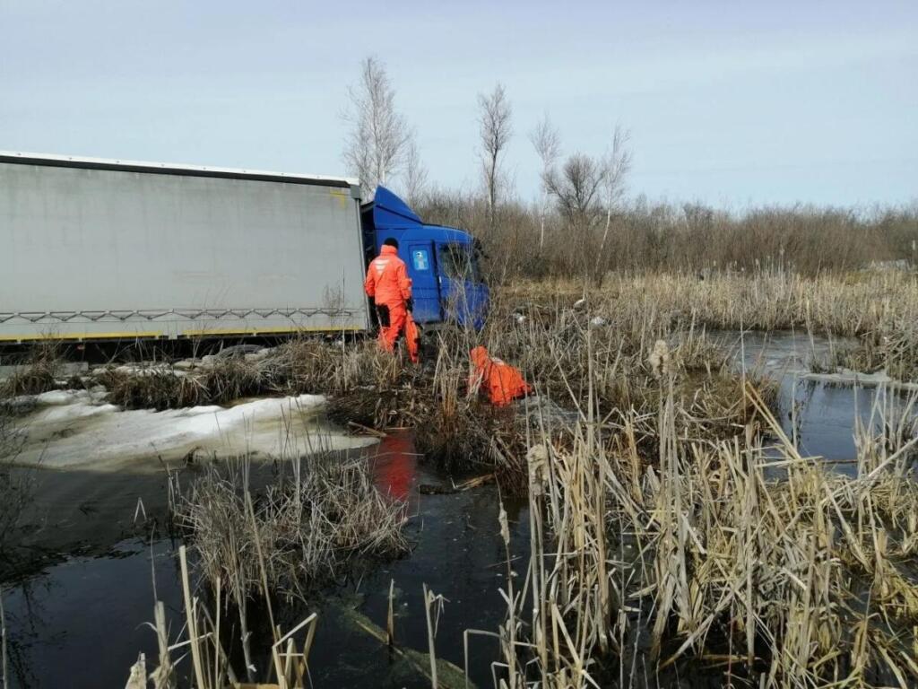 Машина съехала с дороги в низину с вязкой почвой и водой