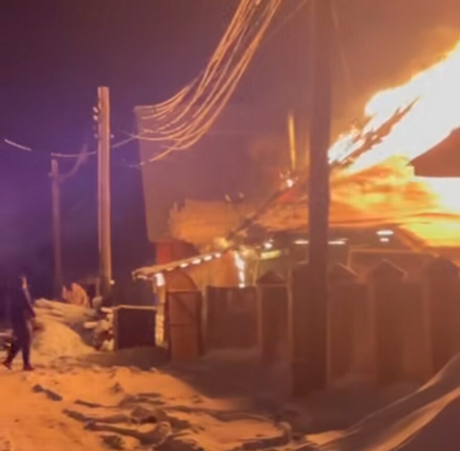 Пожар тушили до утра, спасая стоящие рядом дома и надворные постройки