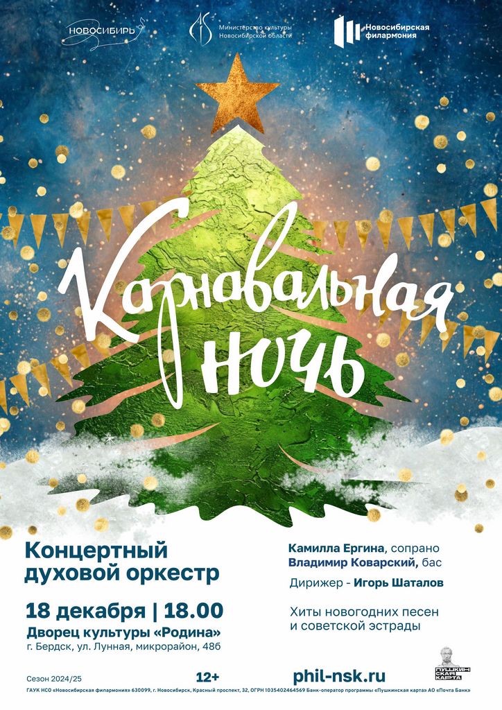 18 декабря ДК «Родина» приглашает на концертную программу «Карнавальная ночь»