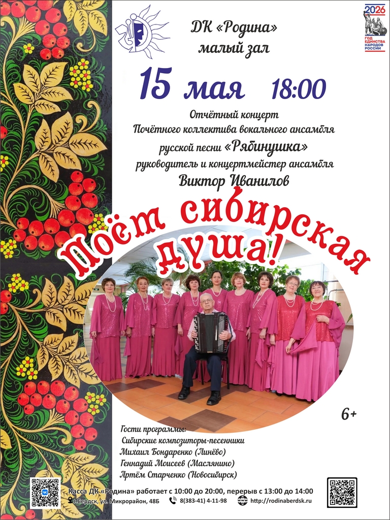 15 мая ДК «Родина» приглашает на концерт «Поёт сибирская душа!»