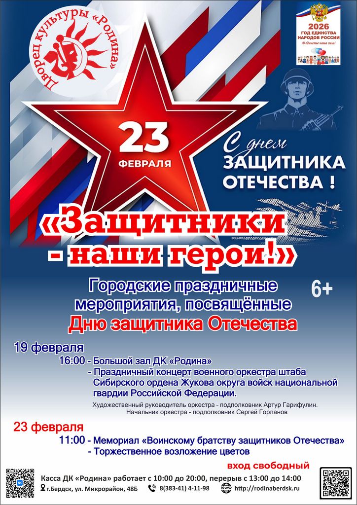 ДК «Родина» приглашает на торжества, посвящённые Дню Защитника Отечества.