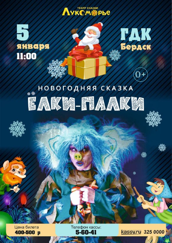 В понедельник, 5 января, в 11:00 в большом зале ГДК Бердска состоится сказочный музыкальный спектакль «Елки-палки» театра сказки «Лукоморье».