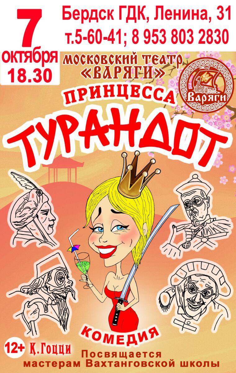 Во вторник, 7 октября, в 18:30 в большом зале ГДК Бердска состоится спектакль «Принцесса Турандот» московского театра «Варяги».