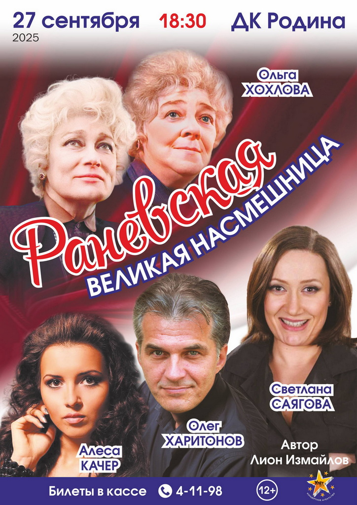 27 сентября Дворец культуры «Родина» приглашает на спектакль «Раневская. Великая насмешница»