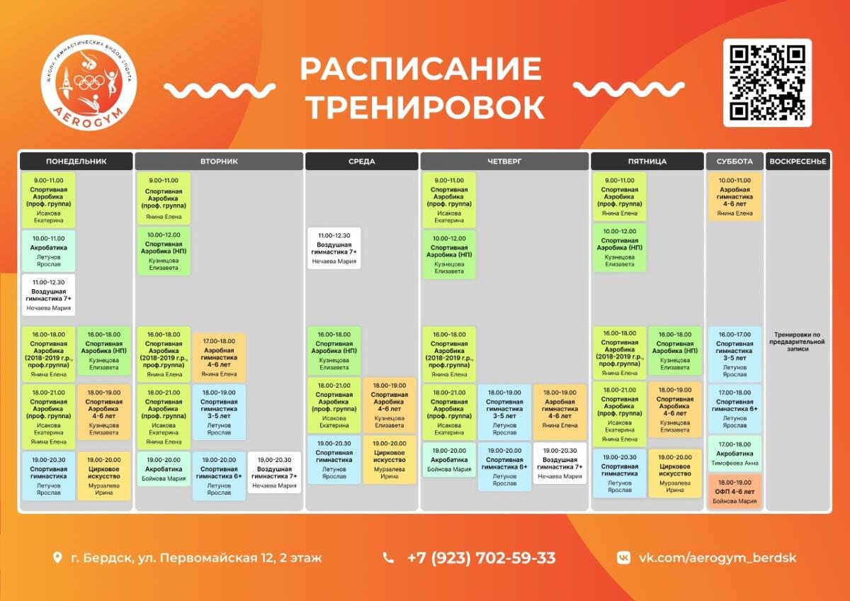 В Бердске в сентябре 2025 года открылась профессиональная школа гимнастических видов спорта AEROGYM по адресу: Бердск, ул.Первомайская 12, 2 этаж.