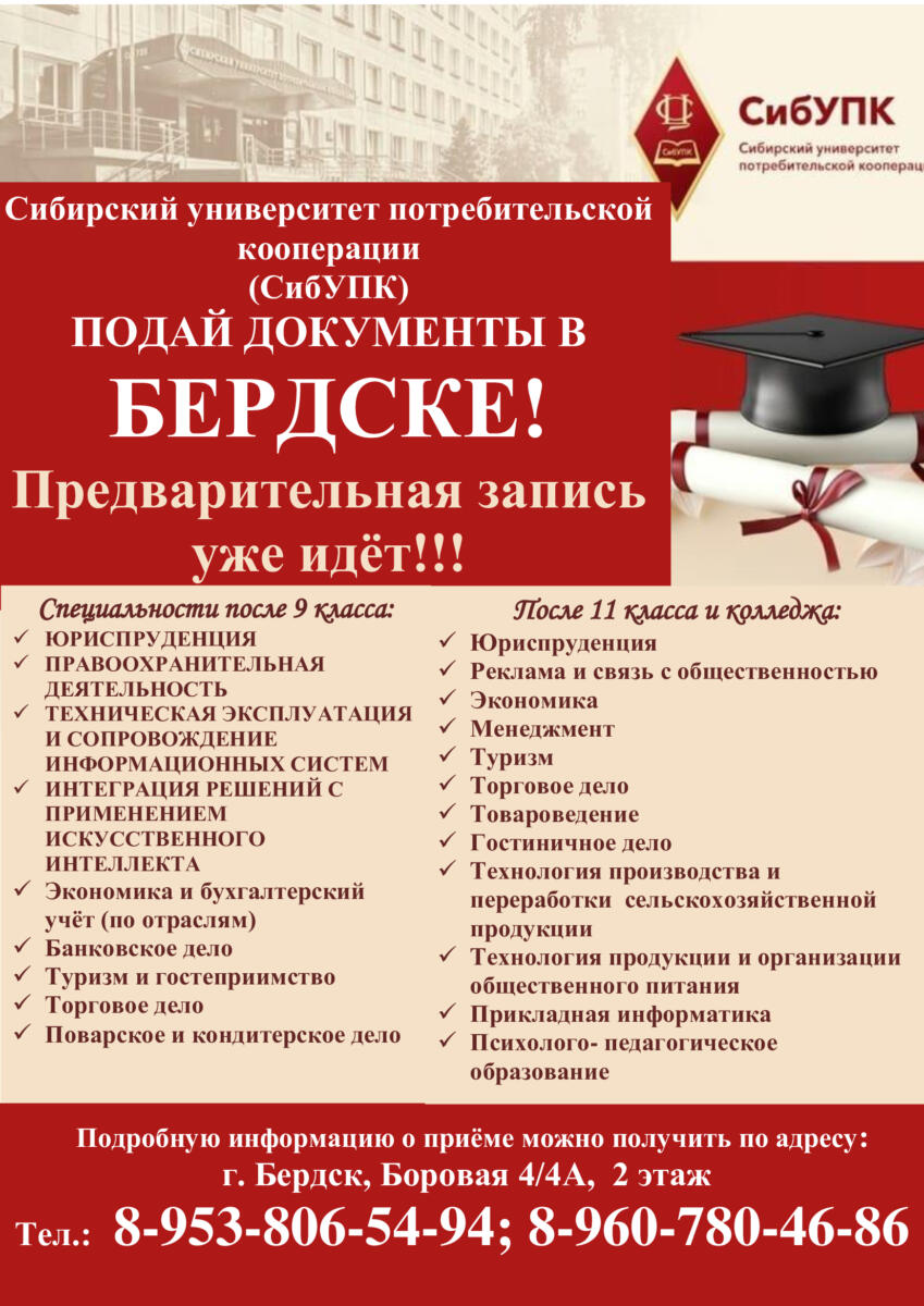 Сибирский университет потребительской кооперации.(г.Бердск, ул.Боровая 4/4А, 2 этаж)