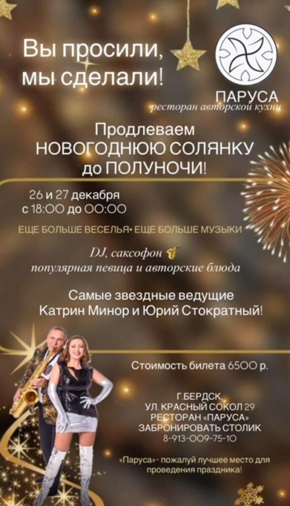 Вы просили, мы сделали! Новогоднюю солянку в ресторане санатория «Парус» продлеваем до полуночи!