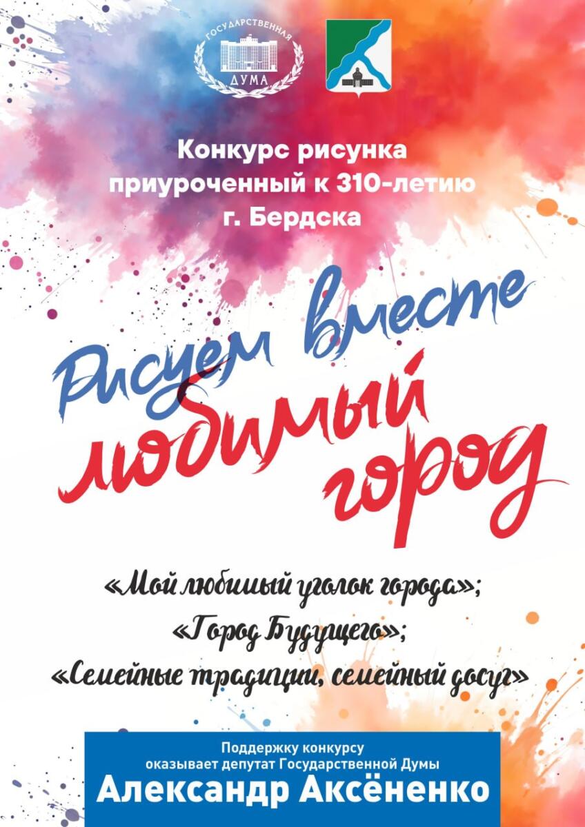 Конкурс детского рисунка, приуроченный к 310-летию Бердска, проводится при поддержке городской администрации и депутата Государственной Думы Александра Аксёненко.
