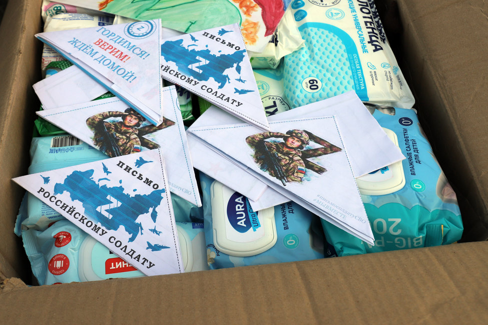 В преддверии Дня защитника Отечества не забыли и о приятных мелочах и десертах: чай, печенье, конфеты. Школьники написали бойцам письма и нарисовали открытки с пожеланиями победы.