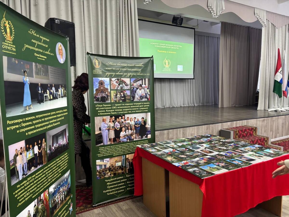 На мероприятии была представлена экспозиция проектов комитета семей воинов Отечества Новосибирской области. Ученики школ №1, №2, №3, №9, №10, лицеев №6, №7 и Экономического лицея познакомились с трогательным фотопроектом «История в лицах» и увидели памятные тетради «Лица героев», посвящённые подвигам наших современников.
