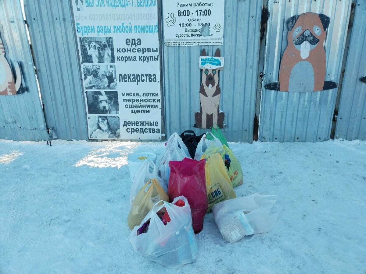 Собранные в ходе акции корма и предметы первой необходимости были официально переданы в бердский приют «Надежда».