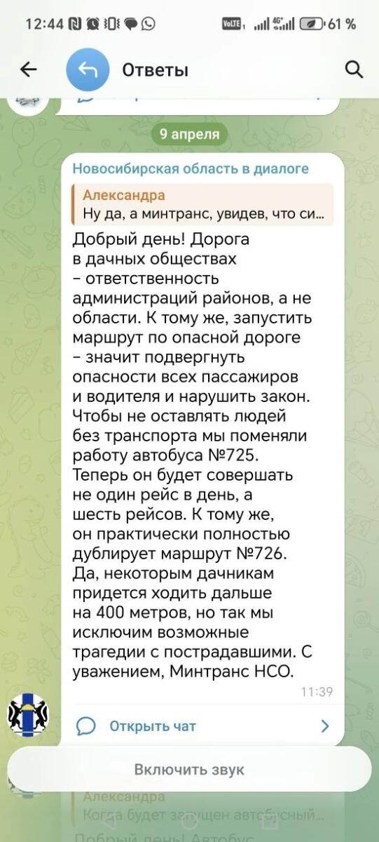 Взволнованные дачники обратились в Минтранс Новосибирской области с письмом – просят пересмотреть решение, принять альтернативное решение, но при этом соблюсти права граждан города. Аналогичные письма направили в совет депутатов и администрацию Бердска.