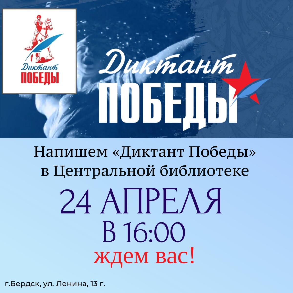 24 апреля Центральная библиотека Бердска приглашает вас присоединиться к международной акции «Диктант Победы», которая в 2026 году проходит уже в восьмой раз.