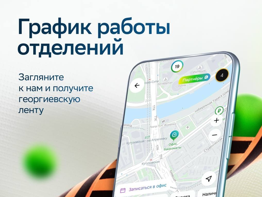 - 5 мая (понедельник) — офисы банка открываются на 30 минут раньше и будут работать в стандартном режиме.