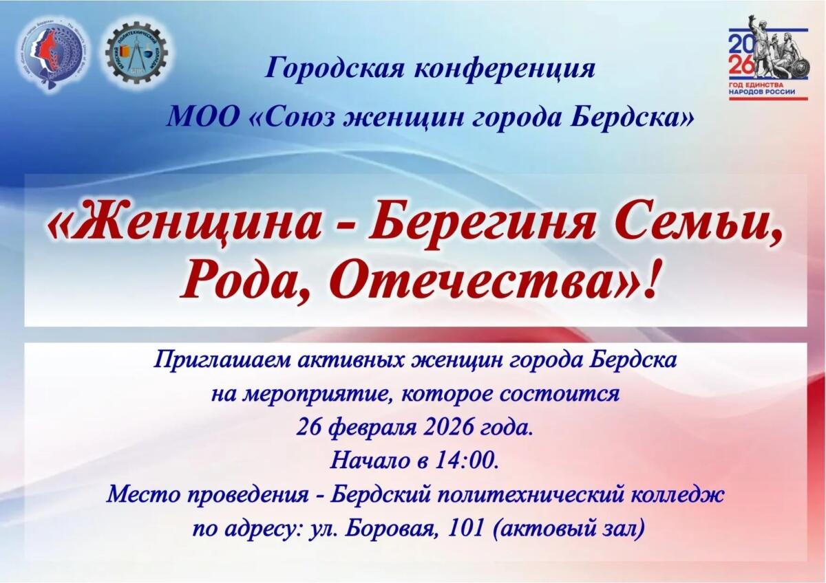 Городская конференция «Женщина — берегиня семьи, рода, Отечества!» состоится в Бердске 26 февраля.