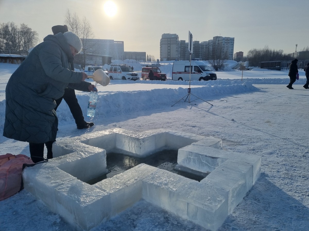Крещение Господне 19 января 2026 года выпало на понедельник – рабочий день. Да еще и в сильный мороз. С утра было -32, к обеду потеплело до -25 градусов.