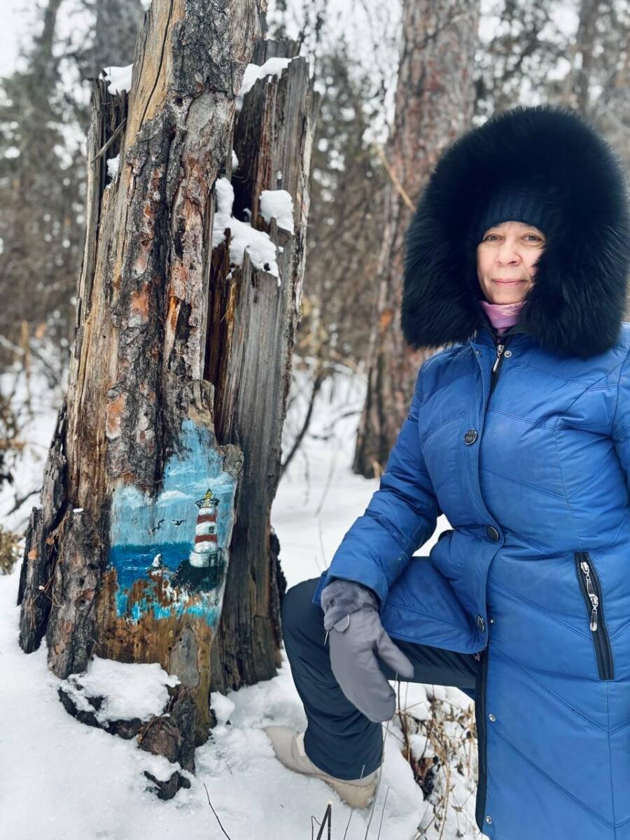 Остаётся на вторую зиму. Я думаю, если бы не рисунок, пень давно бы раскурочили люди. А так его потихоньку жучки точат, — рассказала в личной беседе с корреспондентом Бердск-Онлайн Галина Гамаля.