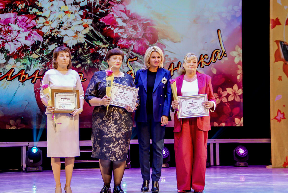 Заместитель главы администрации по экономическим вопросам Вера Шляхто и председатель Совета депутатов Владимир Голубев вручили педагогам заслуженные награды: