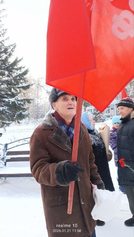 В день памяти Владимира Ленина 21 января бердские коммунисты вышли на митинг к памятнику вождю мирового пролетариата. Развернули кумачёвые знамёна, достали алые гвоздики.