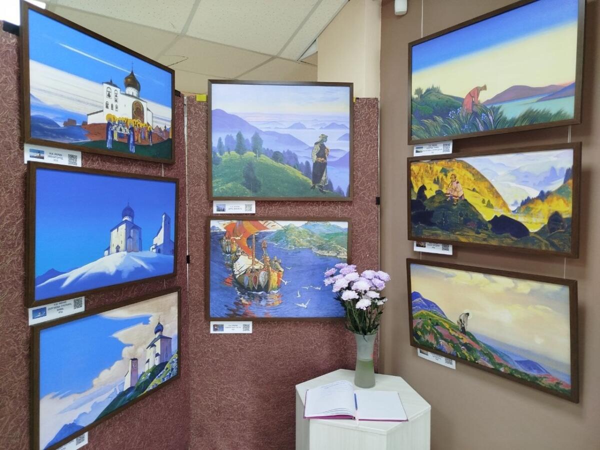 Выставка «Н.К. Рерих и Россия» включает репродукции картин Николая Константиновича, художественно оформленные баннеры и состоит из двух разделов