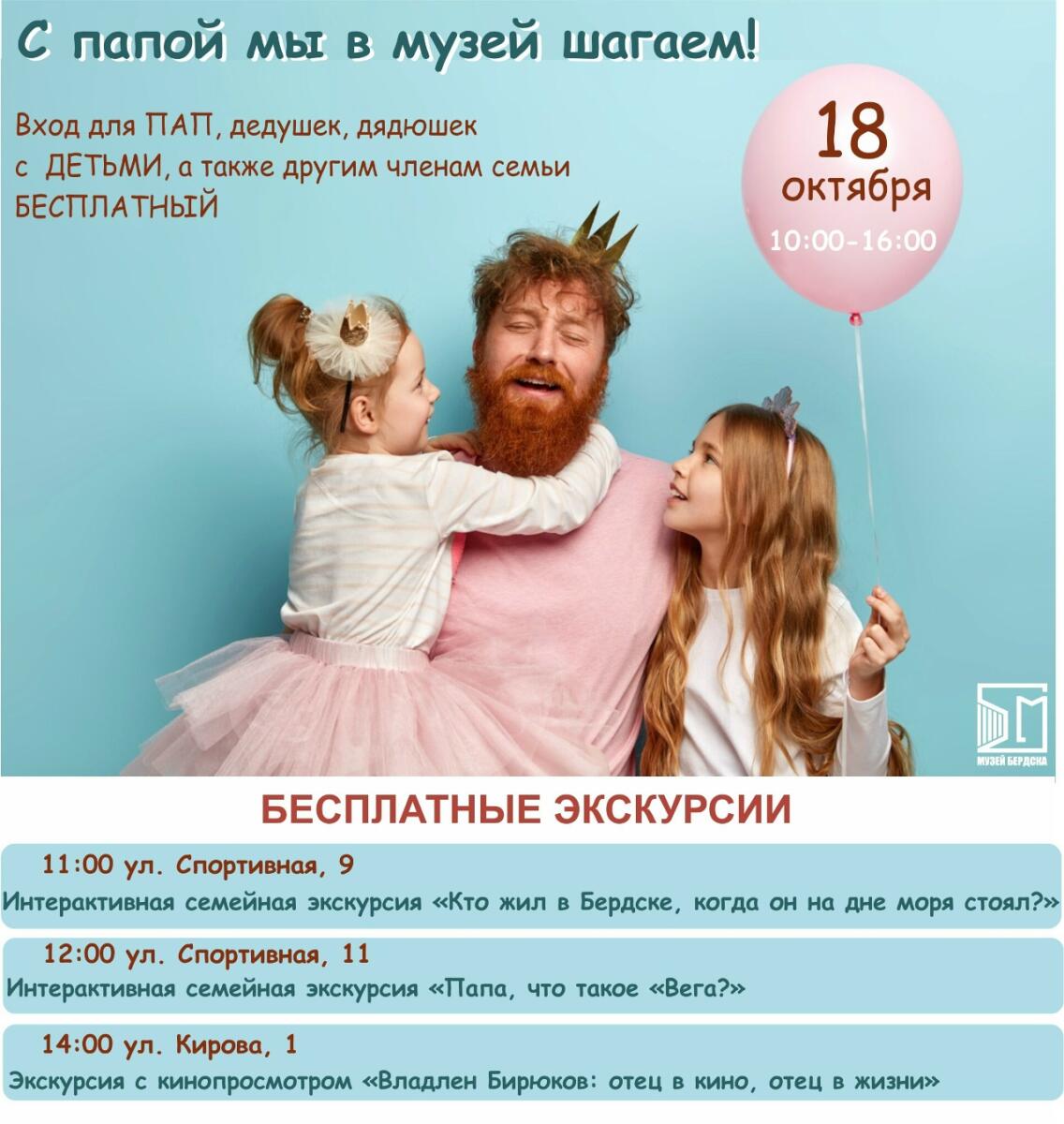 Акцию ко Дню отца «С папой мы в музей шагаем» запускает Бердский историко-художественный музей. Экскурсоводы приглашают 18 октября пап, дедушек и дядюшек на бесплатные экскурсии. Чтобы было веселее, стоит взять с собой всю семью.