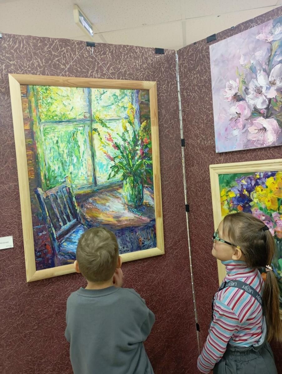 С интересом ребята рассмотрели выставку картин Натальи Атановой «Путь к импрессионизму».