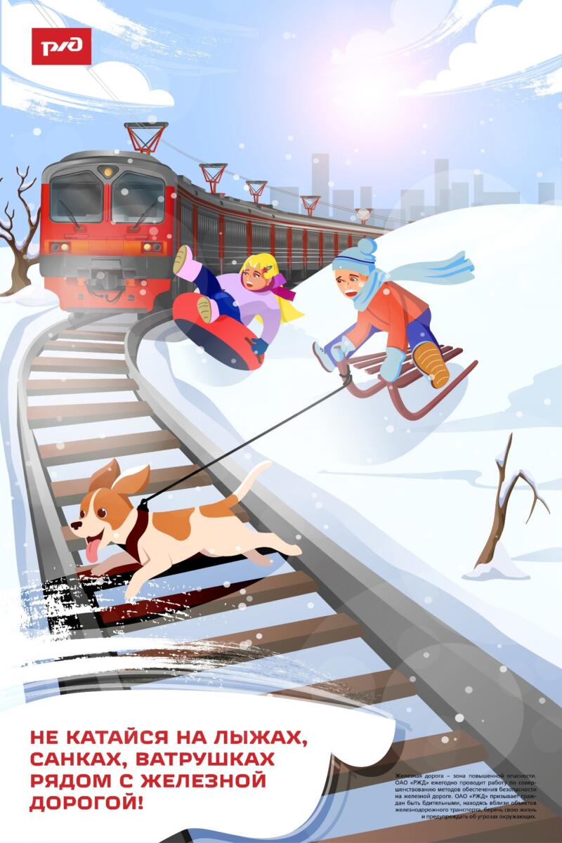 - НЕ кататься на лыжах, санках и ватрушках в зимний период времени с железнодорожных насыпей!