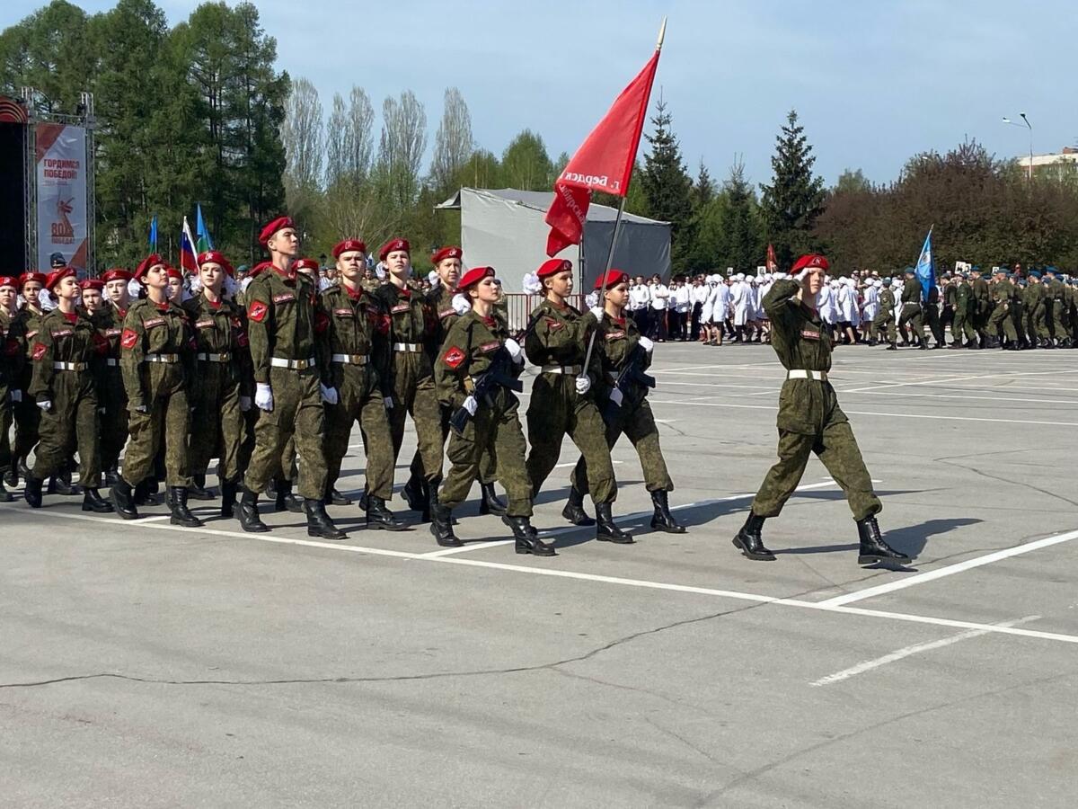 Чеканя шаг, парадным строем по главной городской площади идут внуки и правнуки Победителей. Юнармейцы готовятся к 9 мая.