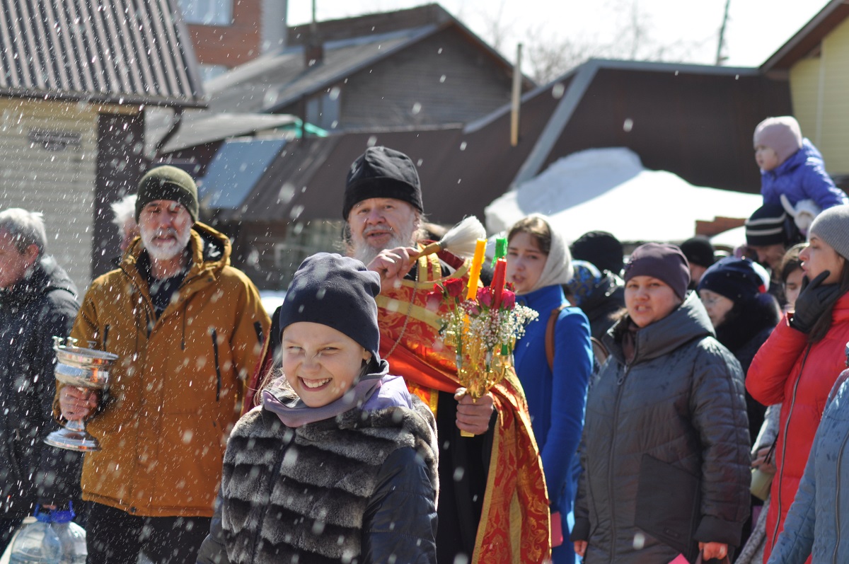 12:30 Слово благочинного города Бердска настоятеля отца Павла; христославие; выступление хора Преображенского собора; освящение пасхальной снеди.