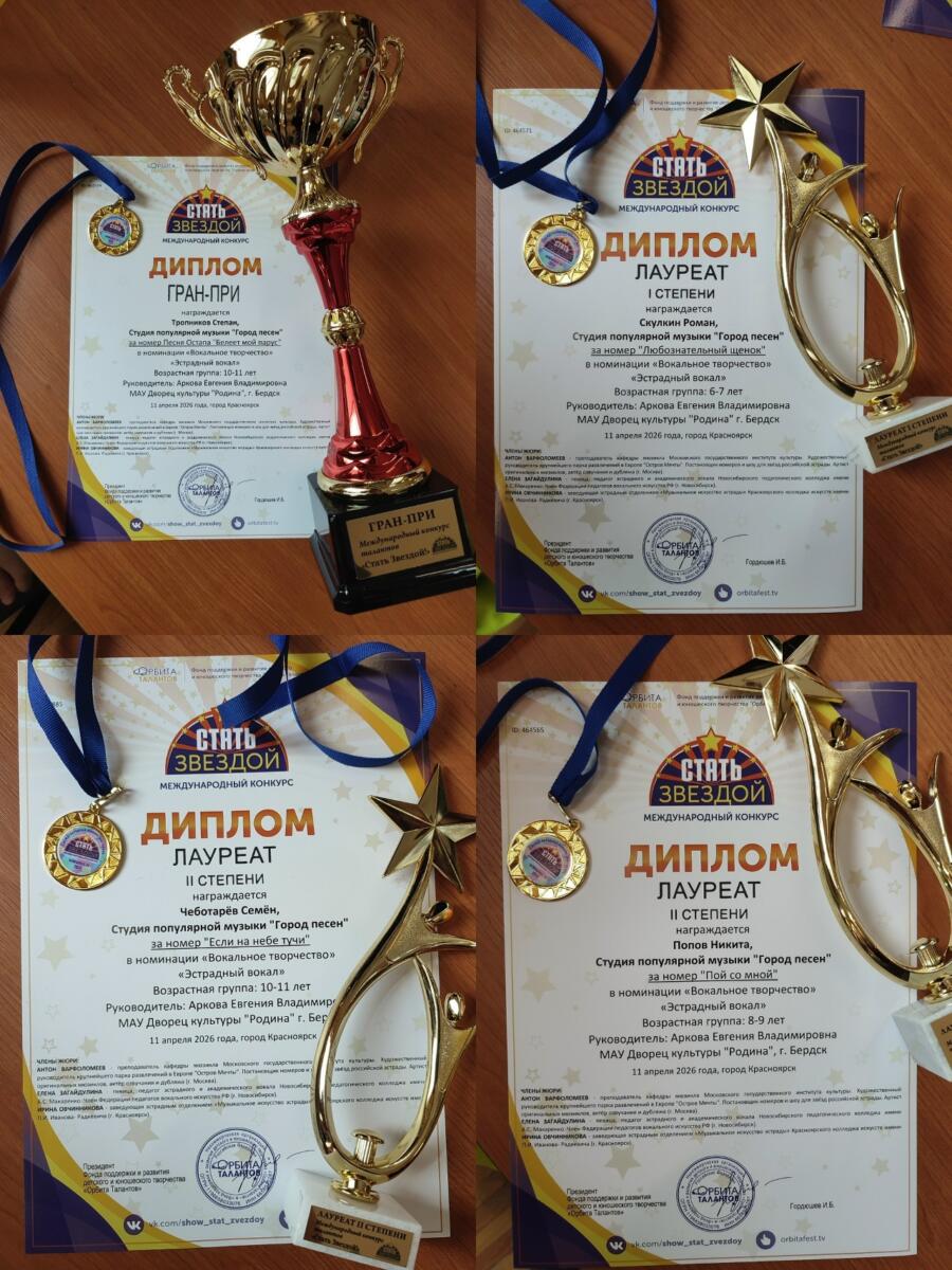 В Красноярске прошёл международный конкурс «Стать звездой». В нём приняли участие солисты студии «Город песен». Конкуренция — серьезная. Более 200 номеров из разных городов было представлено в номинации «Вокал».