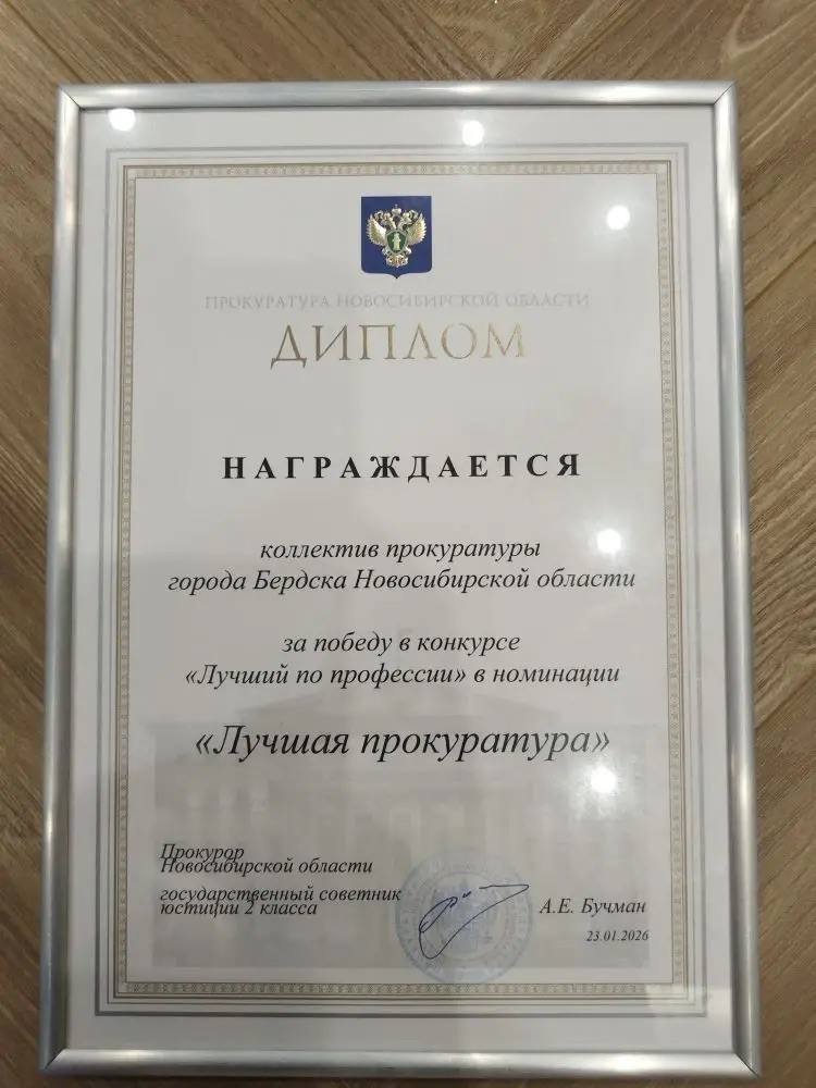 Бердская прокуратура – лучшая в Новосибирской области. Коллектив прокуратуры города Бердска признан победителем конкурса «Лучший по профессии» в номинации «Лучшая прокуратура».