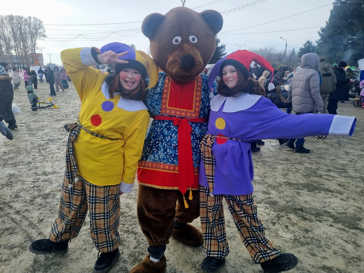 Жители покупают шашлыки, пьют горячий чай. Играют, развлекаются, охотно фотографируются. Повязывают ленточки на счастье и на здоровье. Гуляют все в день широкой Масленицы!