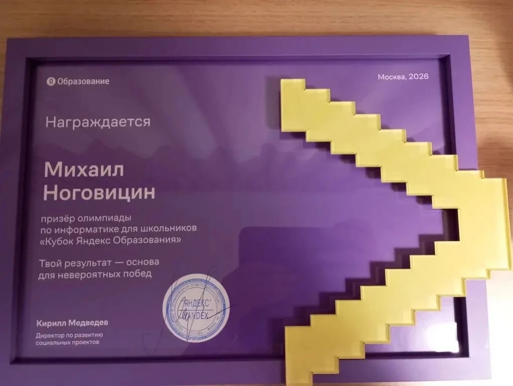 В Москве завершился финал кубка «Яндекс Образования» по информатике. В олимпиаде приняли участие 200 тысяч старшеклассников со всей России. Финал проходил в офисе «Яндекса» с 21 по 22 марта. По результатам первого тура во второй перешли 5,6 тысячи учеников. Финалистами стали 74 школьника из 39 регионов страны. Среди них – обучающийся бердского экономического лицея Михаил Ноговицин.
