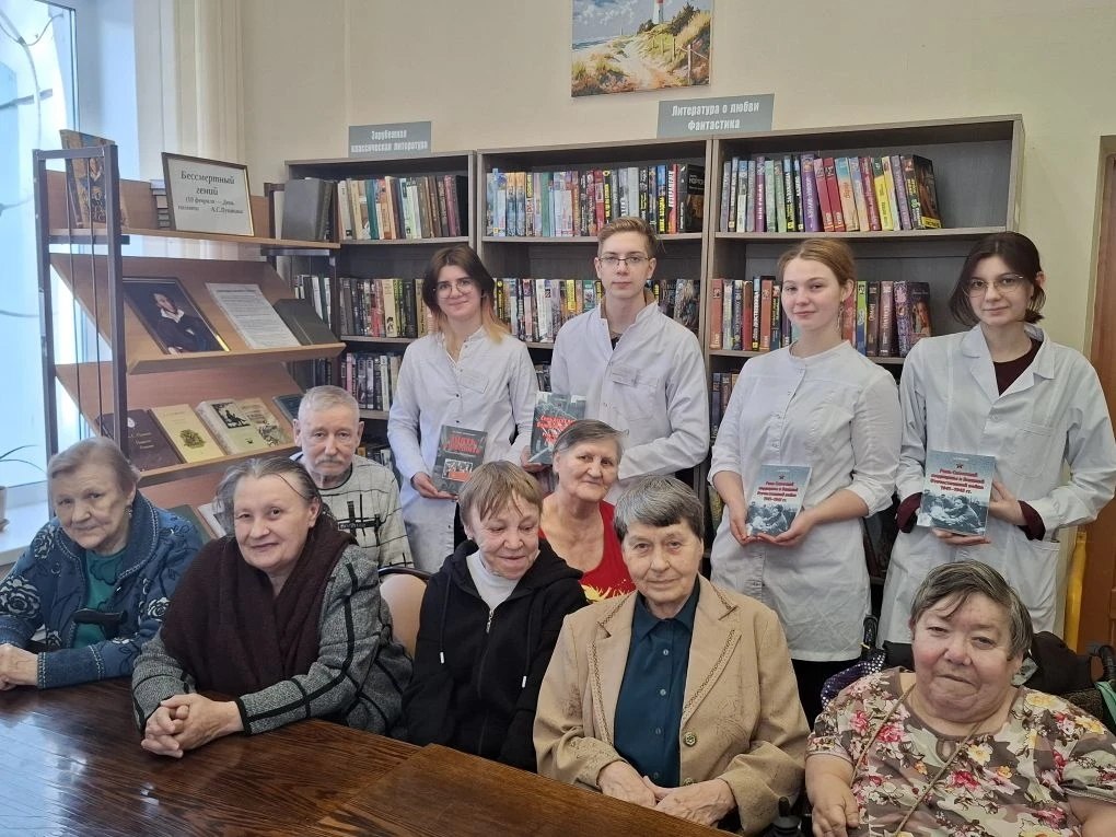 13 февраля будущие медики — студенты группы СК-24 из медколледжа во главе со своим преподавателем Юлий Бессмертной приехали на встречу с проживающими в доме-интернате. Ребята привезли в подарок книги о выдающейся роли советской медицины в годы Великой Отечественной войны. Это была акция, посвященная дню книгодарения.