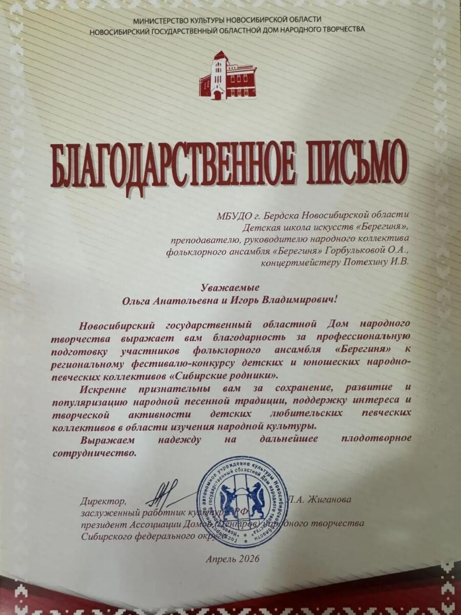 Фестиваль-конкурс «Сибирские родники» стал для юных талантов и их руководителей площадкой для обмена творческим опытом и повышения профессионального уровня. Ну а зрители концертных программ получили удовольствие, прекрасные эмоции и впечатления, познакомились с талантливыми солистами, молодыми фольклорными коллективами и услышали прекрасные образцы народного искусства.