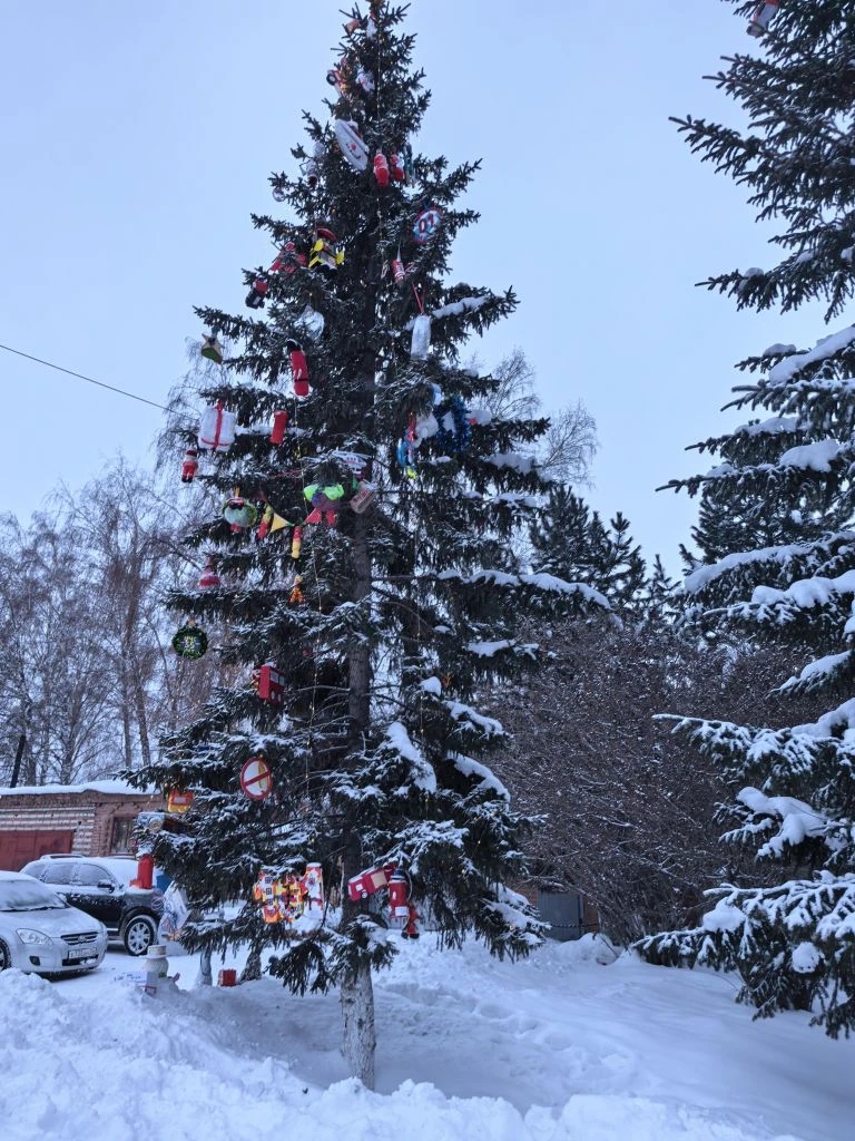 Их поделки вывешены на живых елках возле здания пожарной части на ул. Черемушная в Бердске. И таких красивых елок больше нет ни в одном городе страны!
