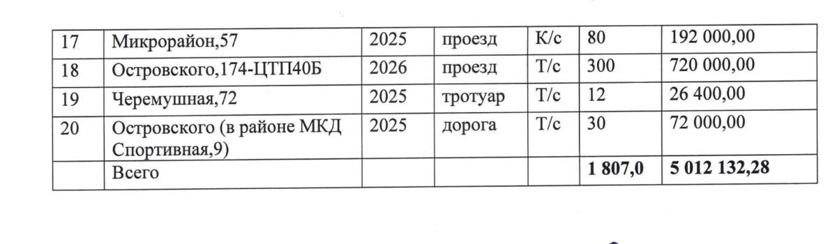 В перечне территории, разрытия которых были проведены в ходе ремонтных работ в 2023-2026 годах. Это проезды, тротуары, дороги, газоны, парковки, отмостки, нарушенные тротуарные плитки. В основном работы, требующие сегодня благоустройства, были связаны с аварийными ситуациями на тепловых сетях.