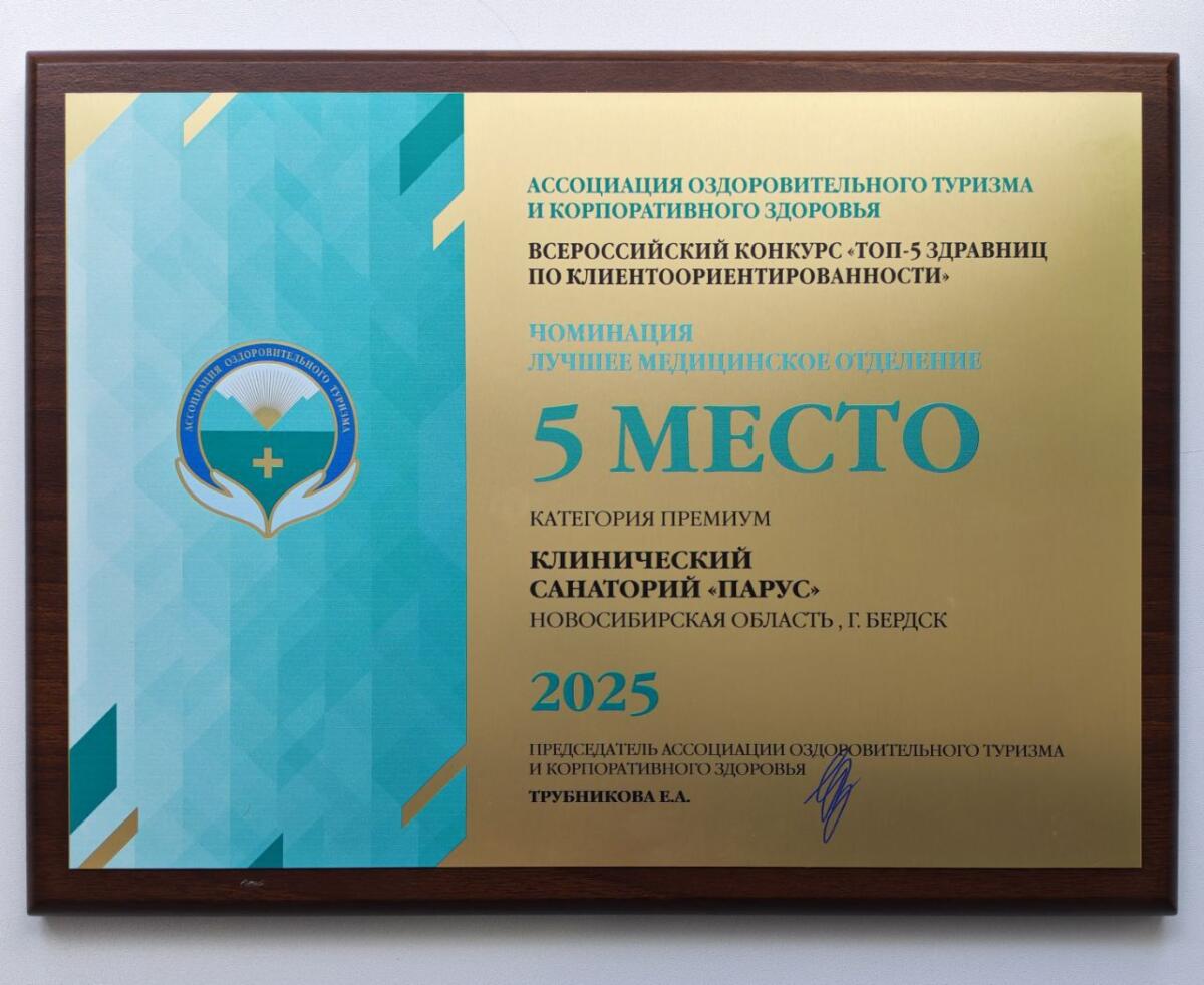 Клинический санаторий «Парус» из Бердска занял 5 место в номинации «Лучшее медицинское отделение» в ТОП-5 здравниц по клиентоориентированности-2025.