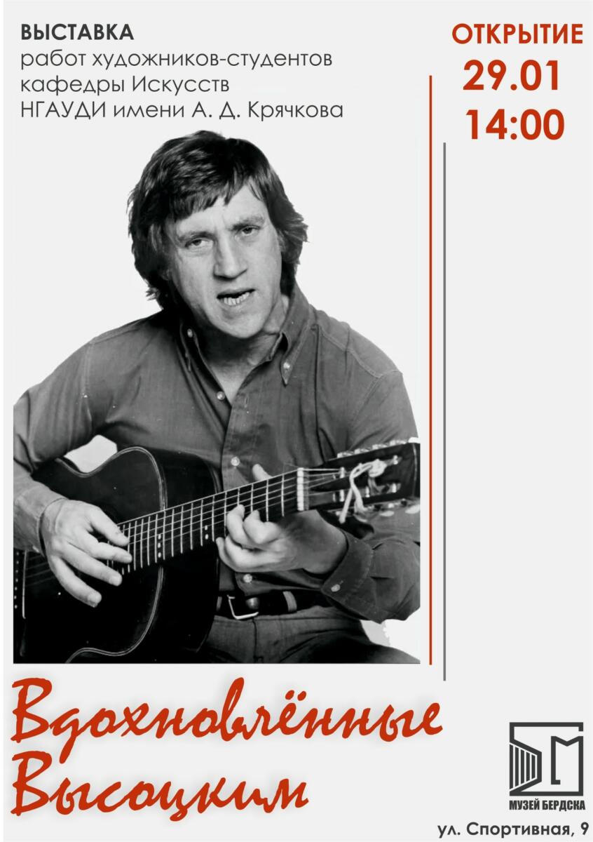 С 24 января начнёт свою работу новая выставка в Бердском историко-художественном музее. «Вдохновленные Высоцким» — это 28 работ талантливых студентов Новосибирского государственного университета архитектуры, дизайна и искусства имени А.Д. Крячкова, написанные по мотивам творчества Владимира Высоцкого. Проект-выставка проходит в рамках международного фестиваля, посвящённого памяти поэта Владимира Высоцкого.