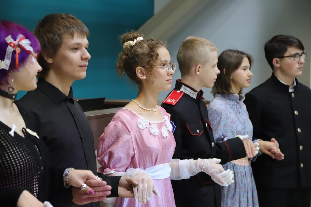 На паркет вышли и старшеклассники школ и Православной гимназии Бердска. Кружились в танце более 50 участников. В течение двух часов юноши и девушки танцевали полонез, вальс, польку и другие бальные танцы, создавая атмосферу подлинного пушкинского времени.