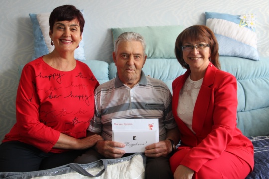 Заместитель главы администрации Ольга Добролюбская вручила ветерану поздравления и подарки, выразив глубокое уважение к его трудовому подвигу и пожелала крепкого здоровья и благополучия.