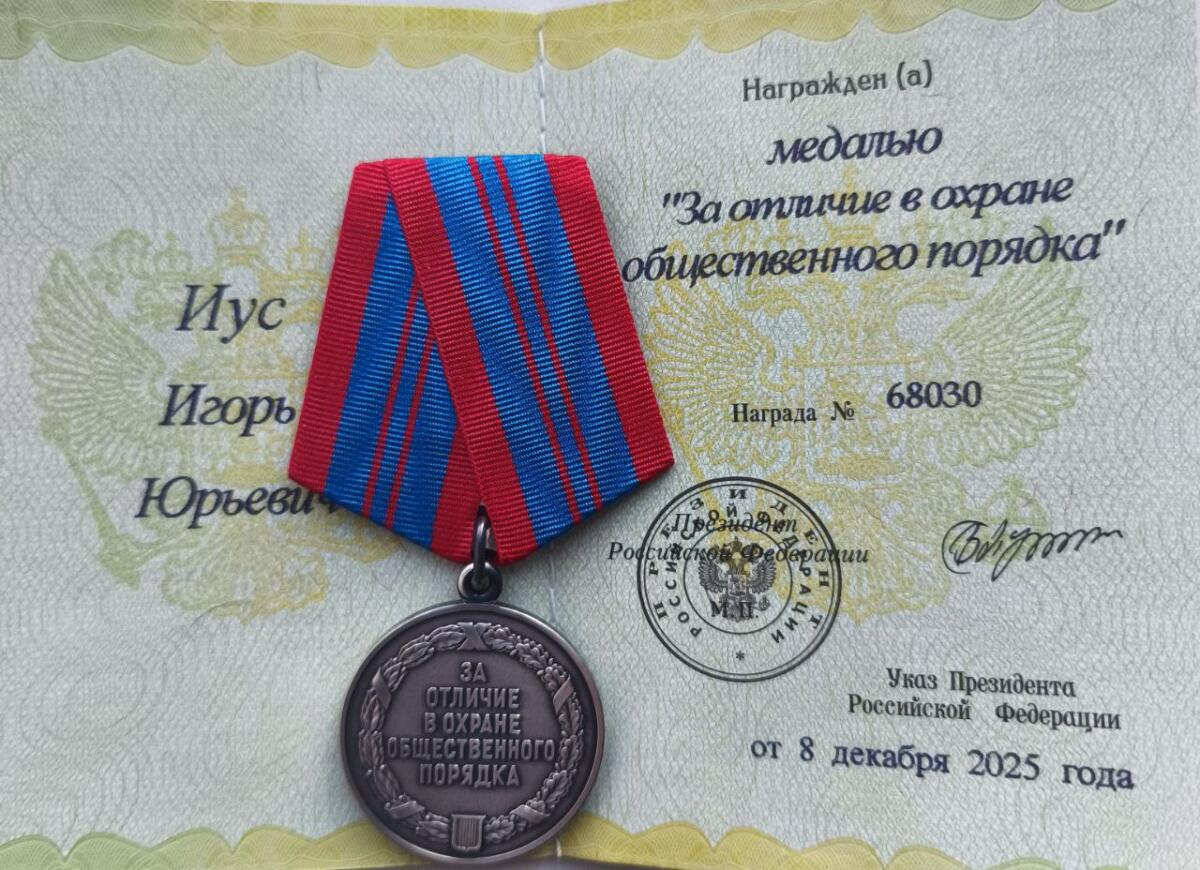Начальника отдела МВД России по городу Бердску полковника полиции Игоря Иуса наградили медалью МВД России — медалью «За отличие в охране общественного порядка». Награду он получил 20 февраля в центре профессиональной подготовки ГУ МВД по Новосибирской области в ходе торжественного мероприятия, посвященного Дню защитников Отечества. Основание для награждения — Указ Президента Российской Федерации 890 от 08.12.2025 года.